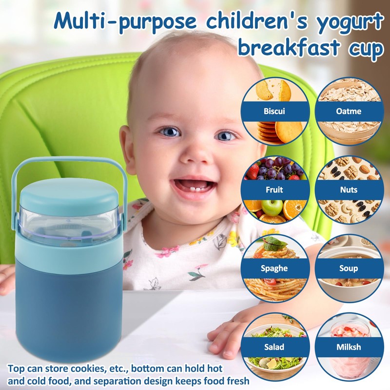 - Separation Design: Separate design keeps food fresh. The top clear container can store cookies; oatmeal; nuts and can also be used as a small bowl. The bottom insulated food jar can hold hot and foods as pasta; soups; salads or milkshakes