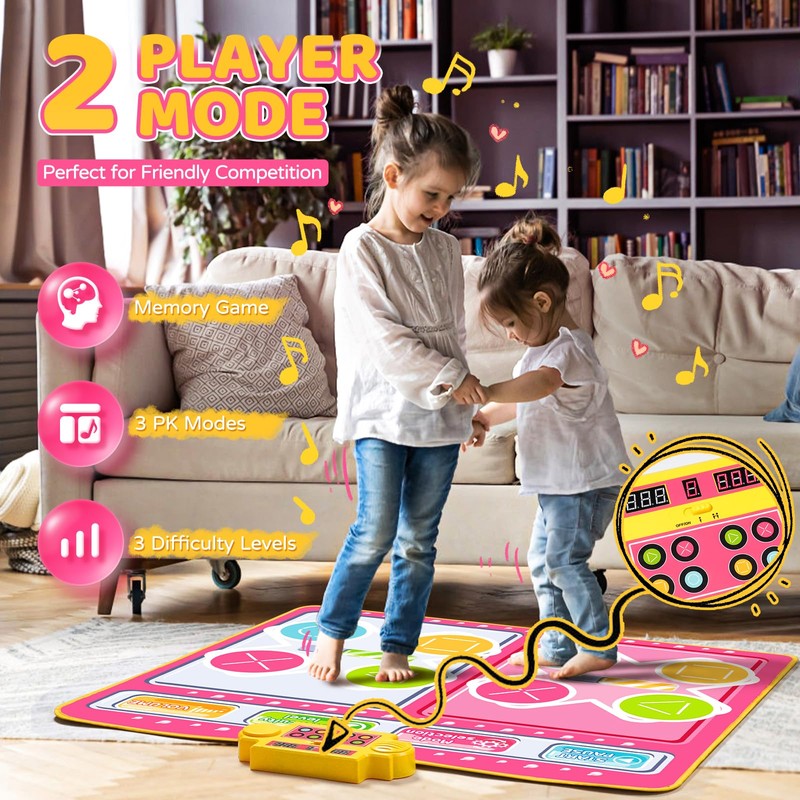 Double Kids Dance Mat Toys for 3 4 5 6 7 8 9 + Year Old Girls Boys, Electronic Dance Pad Birthday Gifts for Toddlers Dancing Play Mat with Light, 8 Game Modes, Built in Music, Adjustable Volume