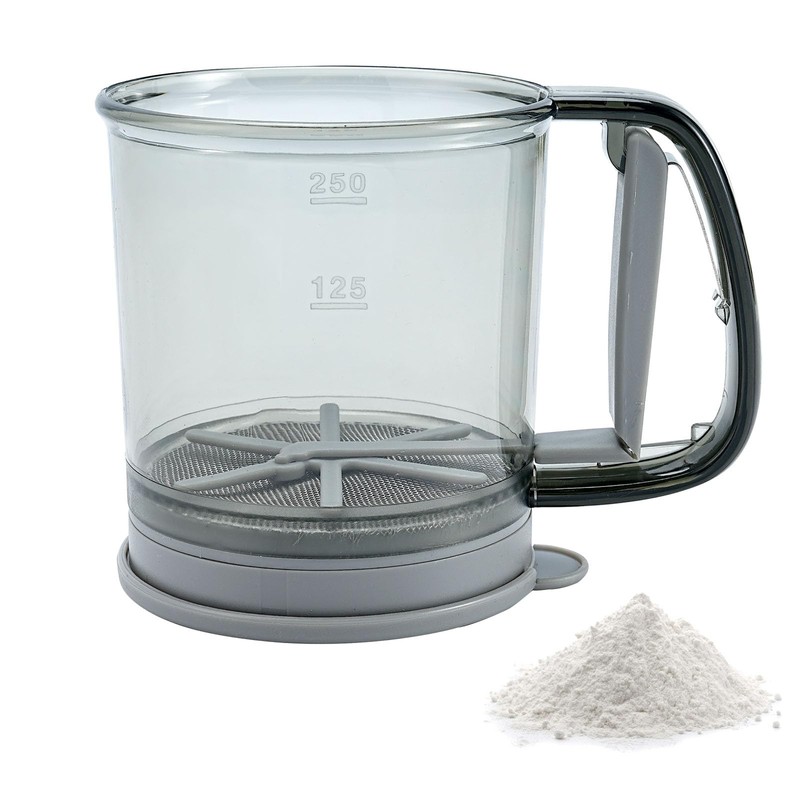 ✿Measurement & Lightweight: A clear scale is marked on the transparent cup so that you can check the exact amount to be used. The overall weight of the sifter for baking is lighter, making it less tiring to use and improving your baking efficiency.