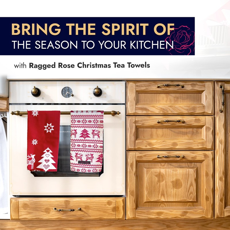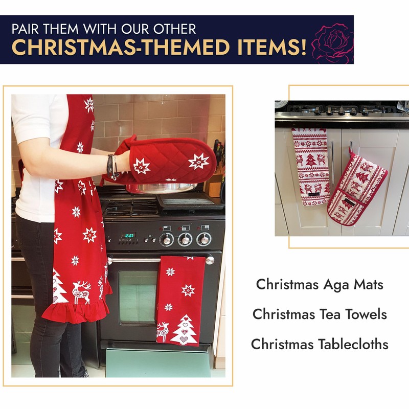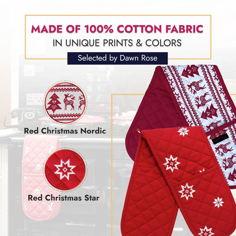 Double Oven Gloves - 84 cm x 18 cm x 1 cm Oven Mitts with Thermal Inner for Cooking & Baking - Cotton, Machine Washable at 30° - Kitchen Essentials by Ragged Rose - Red Christmas Nordic, Pack of 2