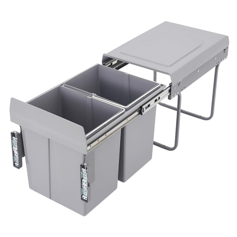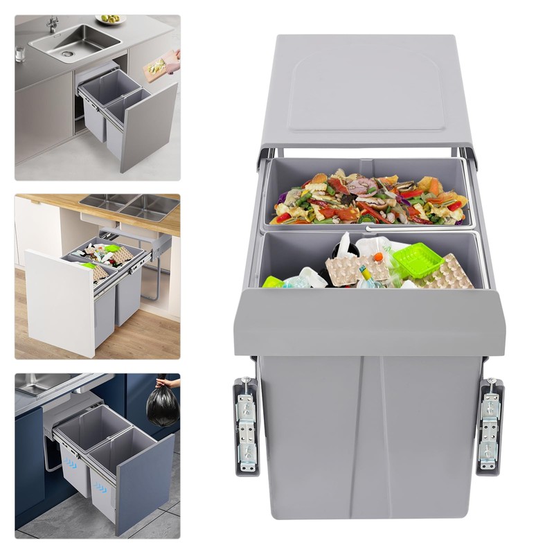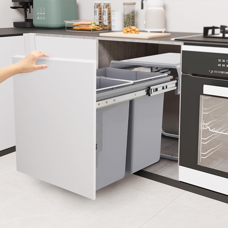- 【Maintain Kitchen Clean】Placing trash cans inside cabinets can effectively prevent ground pollution caused by scattered garbage and maintain a clean kitchen environment. The dual bucket configuration allows users to easily achieve garbage classification.