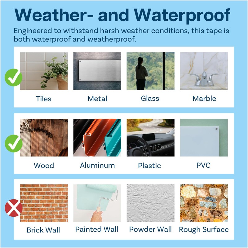 - [Weatherproof and Waterproof] - Engineered to withstand harsh weather conditions, this tape is both waterproof and weatherproof. It maintains its adhesive properties even in wet and humid environments, making it suitable for garden, patio and bathroom applications.