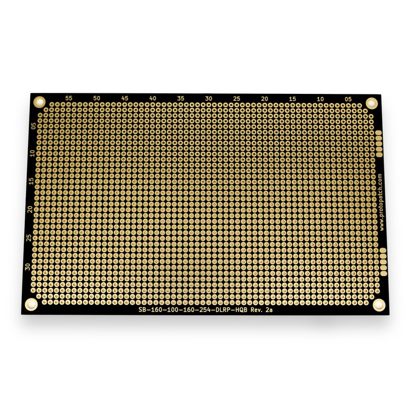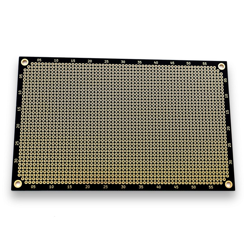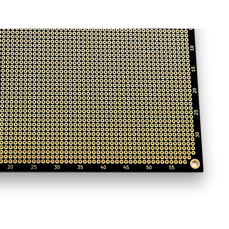 - Length: 160 mm; Width: 100 mm; Colour: Matte Black; Grid: 2.54 mm; Pad Sides: Double-Sided; Pad Shape: Round; Pad Quantity: 4,296 Pads | 2 x (60 x 36 - 4 x 3); Pad Through Plate: Yes; Surface: ENIG-RoHS; … See Product Description