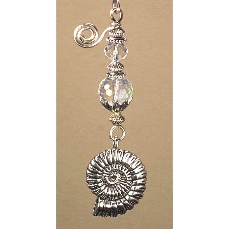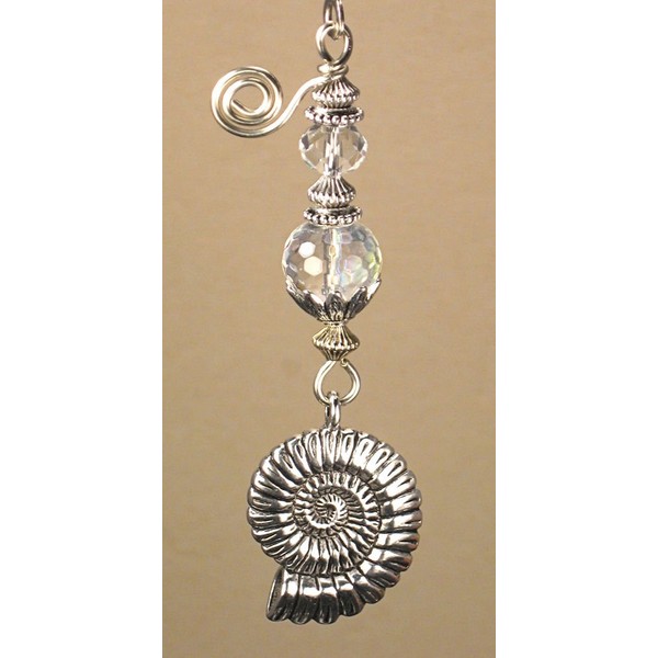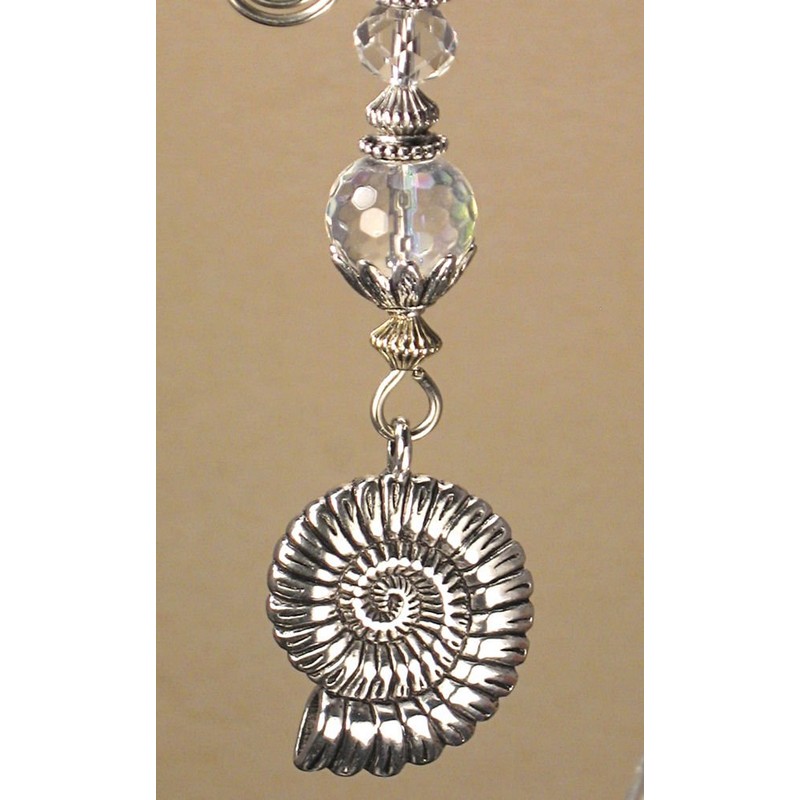 Double-Sided Silvery Nautilus Snail Shell with Iridescent Faceted Clear Glass Crystal Ceiling Fan Pull Chain