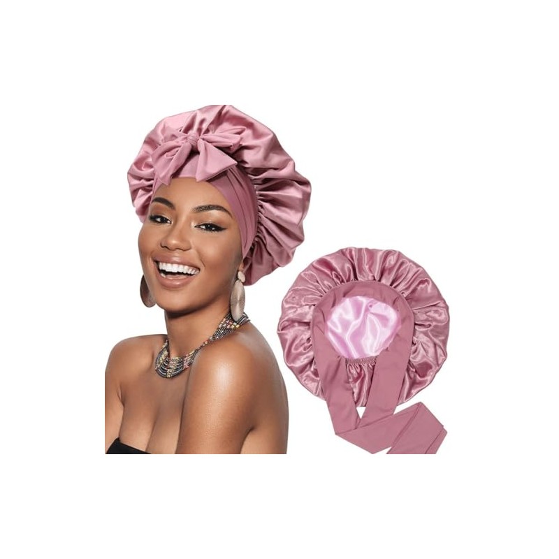 Double Silk Satin Night Cap (Pink/Light Pink)