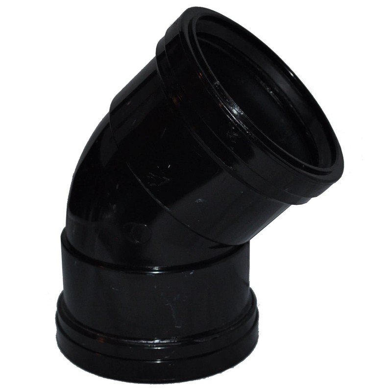 Double Socket Pushfit Soil Pipe 45 Degree Bend - Black - Pack of 2
