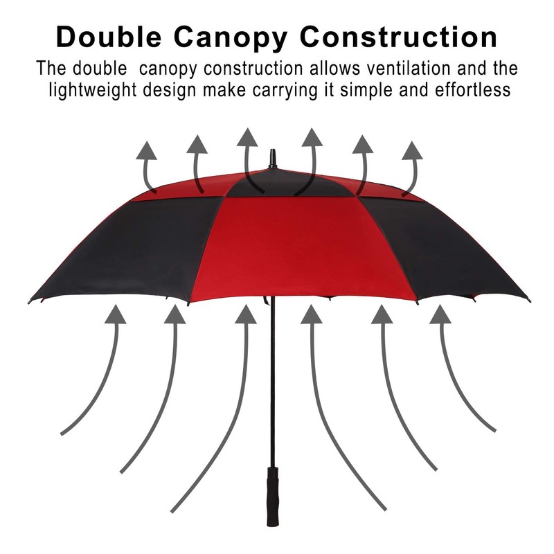 - Windproof design(dual-canopy air vented), durable fiberglass ribs and a sturdy fiberglass shaft offering a robust windproof system for maximum frame flexibility in stormy conditions.