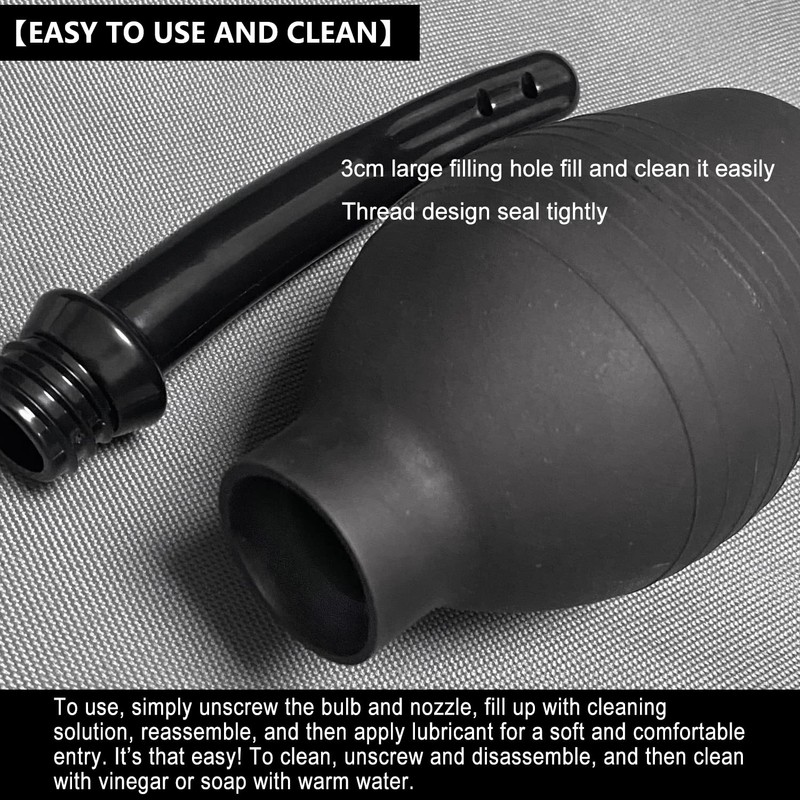 Douche Enema Bulb for Men or Women - with Anti Back-Flow and 8 Shower Holes, Easy to Clean and Reusable Douche Cleaner (10 oz) (Black)