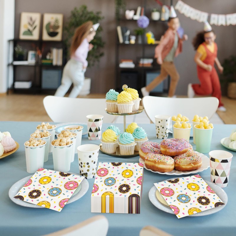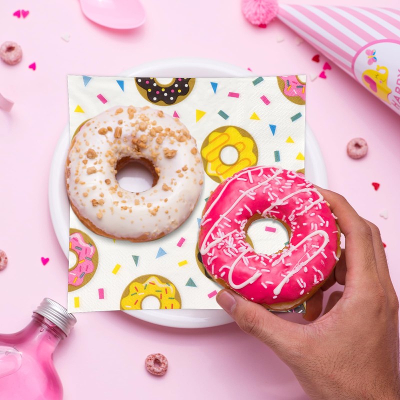 Doughnut Napkins,Sweet Doughnut Children's Napkins for Party Table Decoration,Birthday Party,Wedding Anniversary,Baby Shower,Family Gatherings