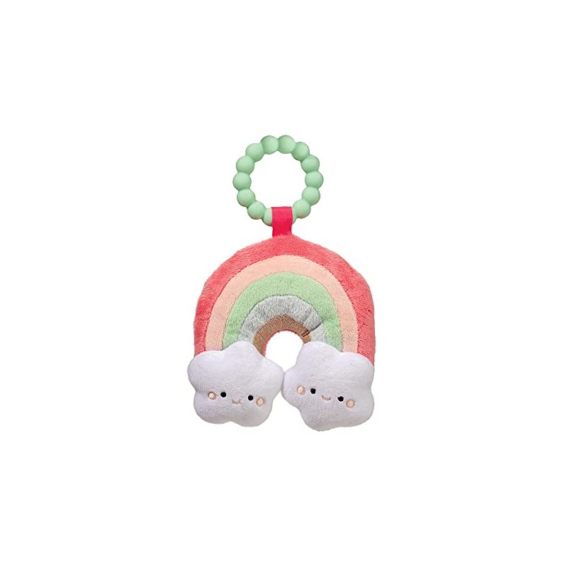 - Two little cloud friends accompany this Rainbow Teether from our Rainbow Unicorn character collection. Ultra soft plush materials in playful colors are combined with baby-safe embroidery to make this machine washable soft toy safe for infants.
