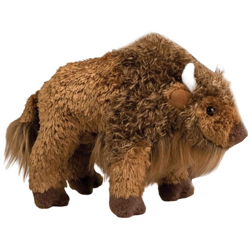 - He features a beautifully textured plush coat and pale, curved horns. Bodi's bright eyed expression and shaggy beard bring this beautiful bison stuffed animal to life.