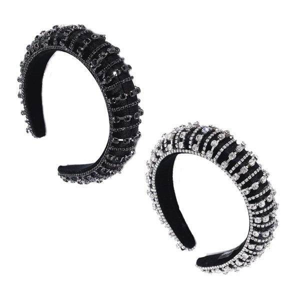 DouuYuhet Sparkle Diamond Crystal Headband Rhinestone Women Headband Padded Wide Hairband Glitter Crystal Embellished Wide Top Knot Headband Hair Accessories (Black, White)