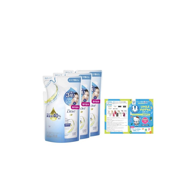 Dove 3-in-1 Makeup Remover Foaming Facial Cleanser Refill, 3.2 fl oz (120 ml) x 3, Bonus Lotion Included