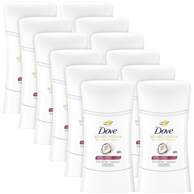 Dove Advanced Care Antiperspirant, Caring Coconut, 12-Pack – Moisturizing Deodorant Stick with 48H of Sweat Protection, 1.6 Oz Ea