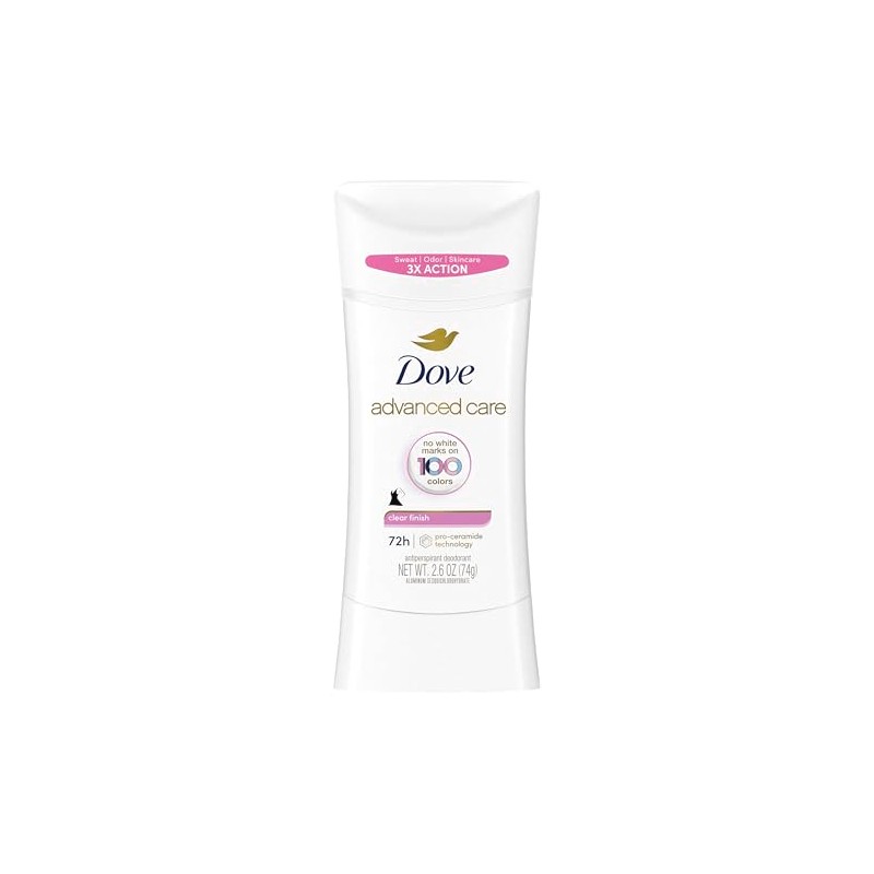Dove Dove Advanced Care Antiperspirant Deodorant Stick for Soft, Resilient Skin, Clear Finish with No White Marks and 72-Hour Sweat & Odor Protection, 2.6 oz