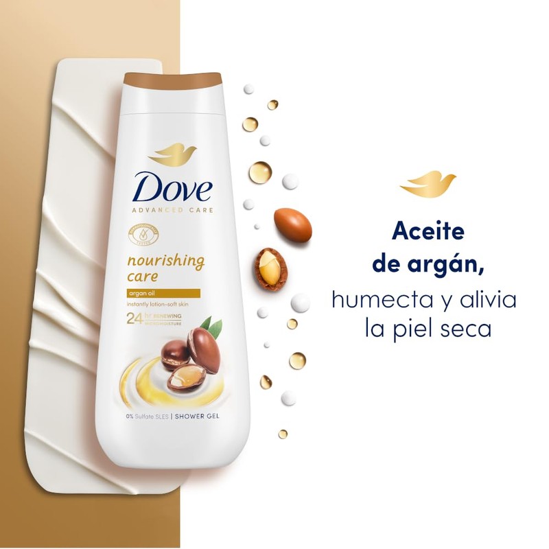 Dove Jabón Líquido Corporal con aceite de argán, deja la piel hidratada, tersa y saludable 400 ml