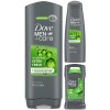 - This regimen pack combines the refreshing power of Dove Men+Care’s plant-based moisturizers with skin-strengthening formulas to deliver long-lasting cleanliness and comfort from head to toe. Featuring a 2-in-1 Shampoo + Conditioner, Body & Face Wash, and 72-Hour Antiperspirant Stick, each product is designed to revitalize hair, hydrate skin, and protect against sweat and odor.