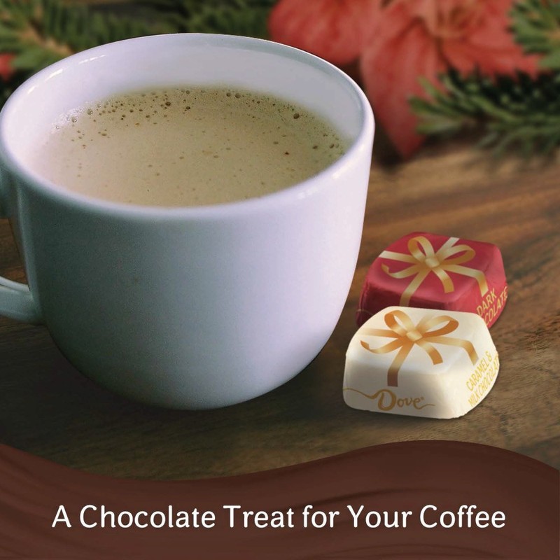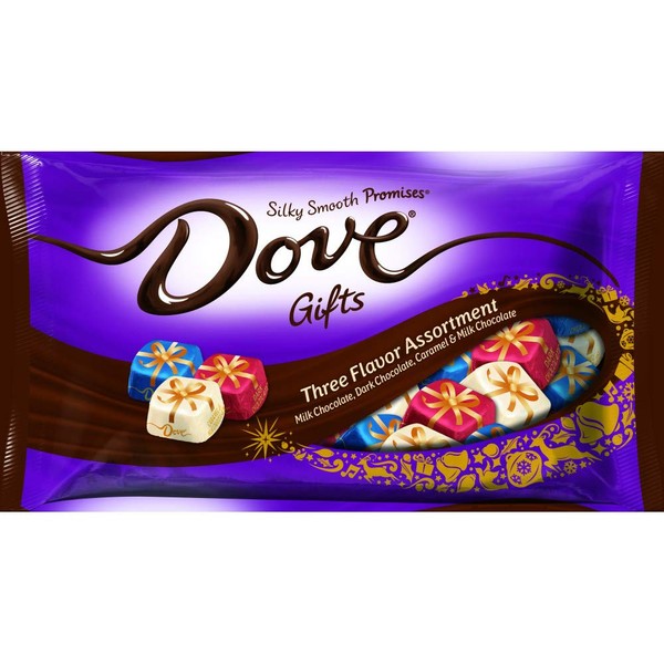 - Contains one (1) 8.2 Ounce bag of individually wrapped DOVE Milk Chocolate, Dark Chocolate and Caramel Snowflake Promises.