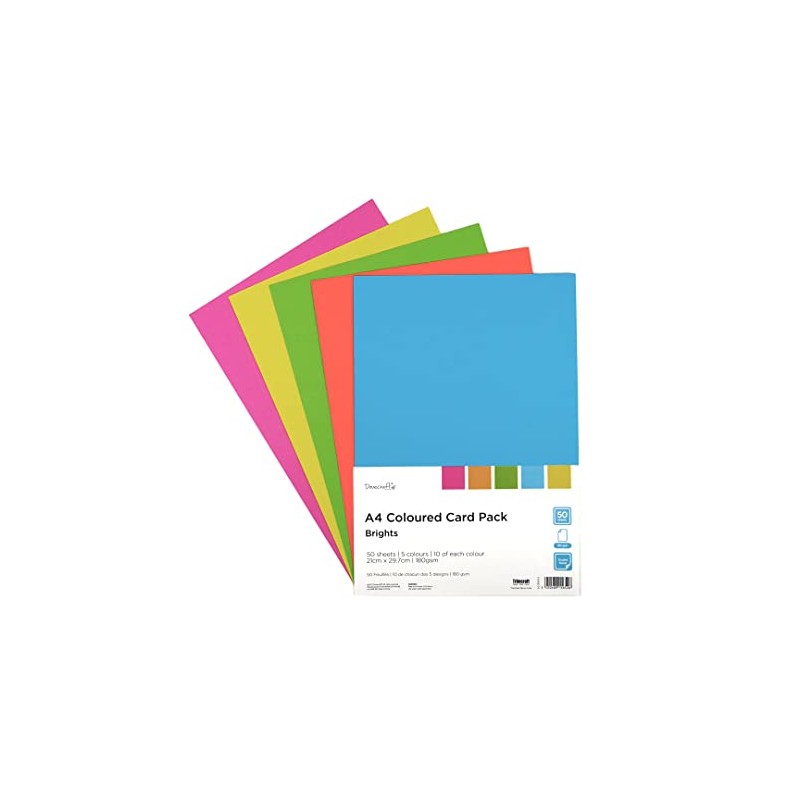 • ★ABOUT THESE COLOURED CARD PACKS★ Dovecraft’s A4 coloured Card packs are the perfect edition to your crafting basket for a wide variety of everyday crafting projects. Each paper pack measures 21cm x 29.7cm’ and has a weight of 180gsm with 50 sheets inside,