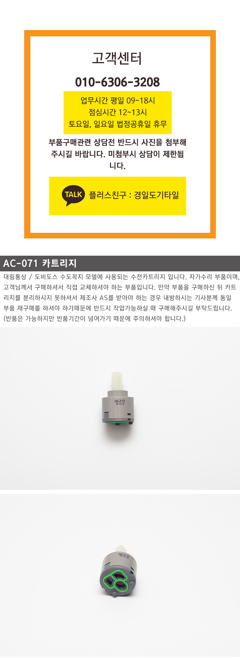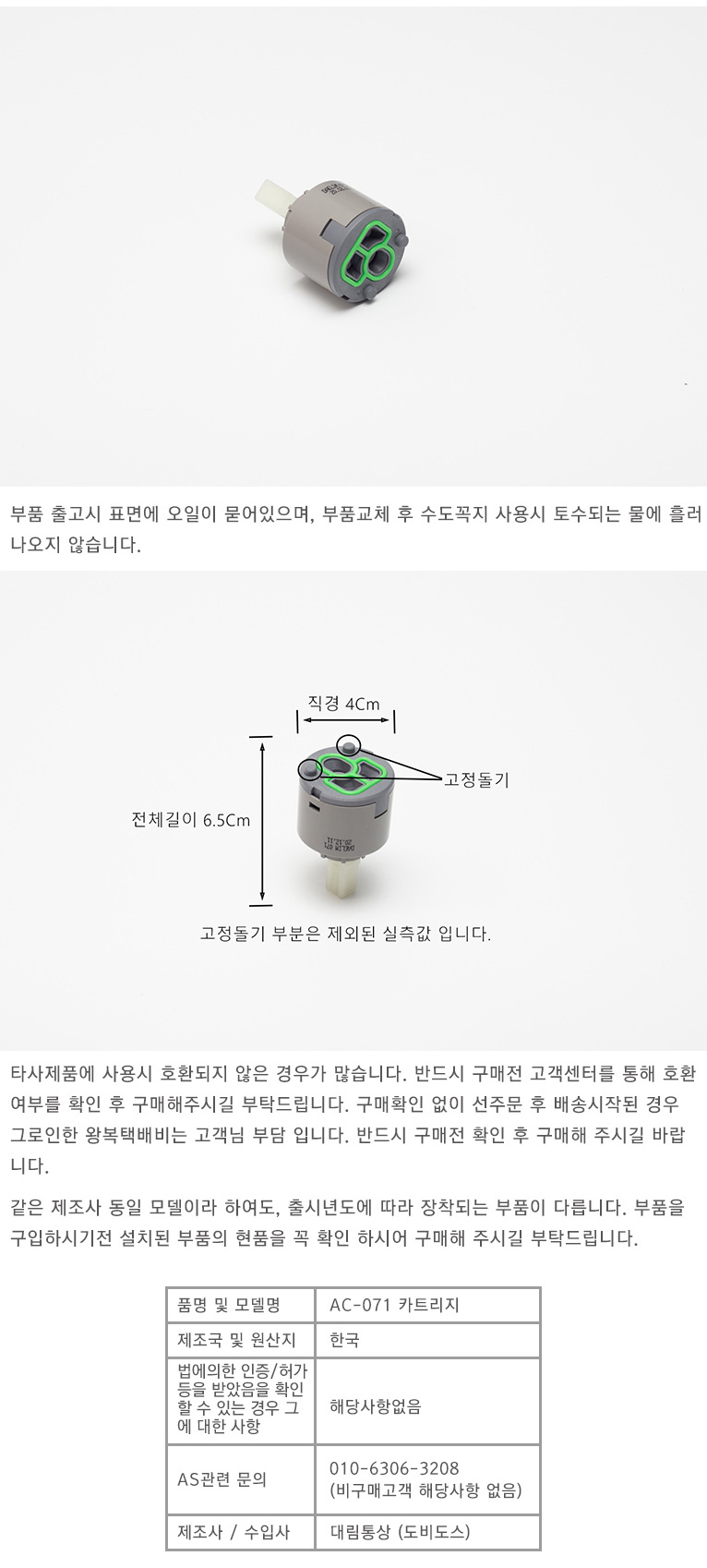 Dovidos Daelim Faucet Faucet Cartridge Parts Wash Basin Shower AC-071 / 도비도스 대림수전 수도꼭지카트리지 부품 부속 세면기 샤워기 AC-071