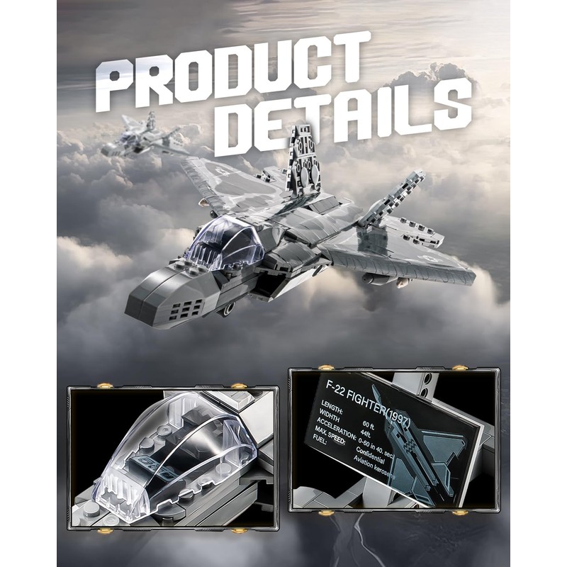 dOvOb Military F-22 Raptor Fighter Jet Air Force Building Block Set (626 Pieces), Fighting Falcon Army Plane Toys as Gift for Kids or Adult