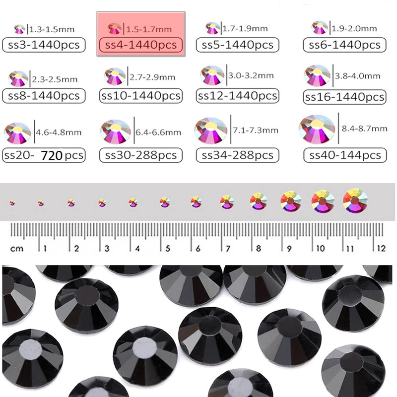 - ▲ Size and Quantity: These SS4 flatback rhinestones are tiny, with diameter 1.5mm, you will receive 1440Pieces. They are swarovski alternative premium quality flatback rhinestones, ideal for nail art.