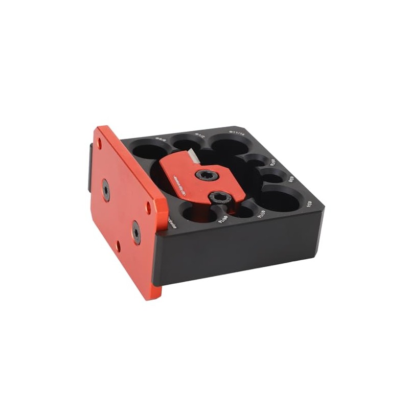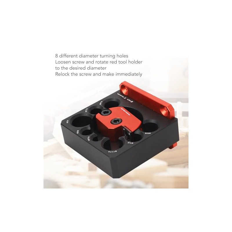 - EASY TO OPERATE: Adjustable dowel maker jig come with 8 different diameter turning holes, loosen the screw and rotate the red tool holder to the desired diameter, relock the screw and make immediately