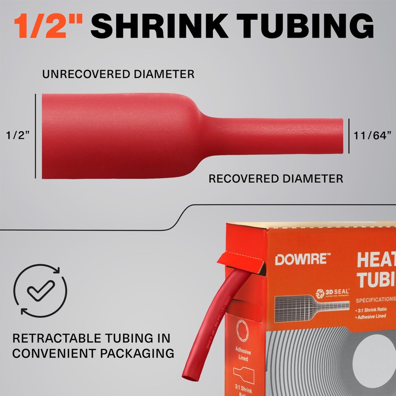 Dowire Heat Shrink Tubing 1/2" - Adhesive Lined - 3:1 Ratio - Waterproof Marine Grade Shrink Tube - Wire Shrink Wrap Tubing - Red - 20 Feet