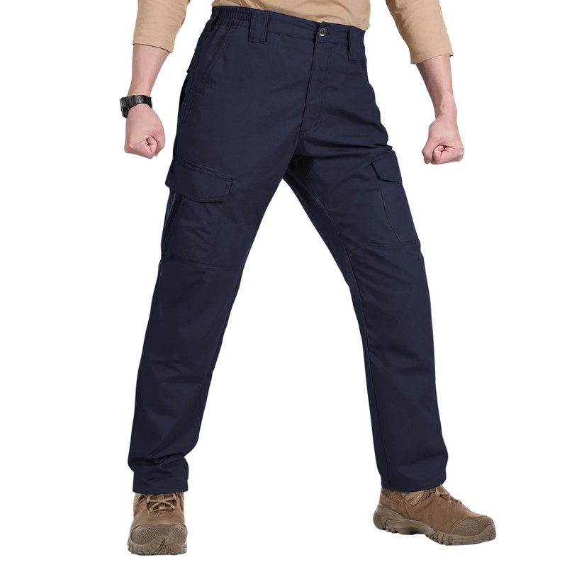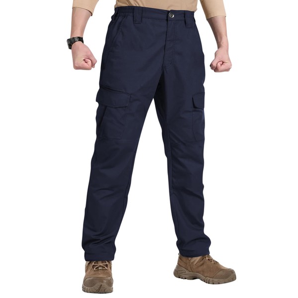 DOWMQ Mens Hiking Cargo Pants with 8 Pockets Elastic Waist Waterproof Ripstop Tactical Pants for Hunting Climbing Navy Blue S