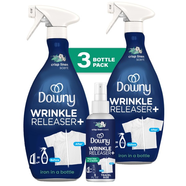 - This Bundle includes 2 Bottles of Downy Wrinkle Releaser 16.9 Fl. Oz. and 1 Travel size bottle 3 Fl. Oz. - CRISP LINEN SCENT