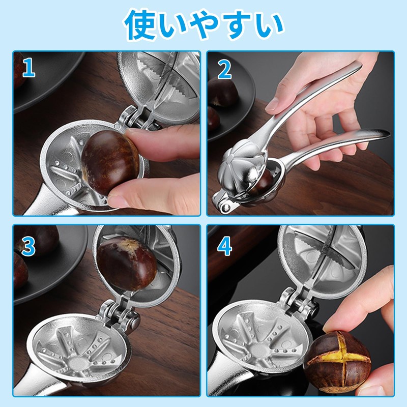 - Ergonomic Grip Grip: The non-slip handle and tray make it more comfortable to use. Furthermore, the inner criss-cross serrated teeth help you cut chestnuts easily