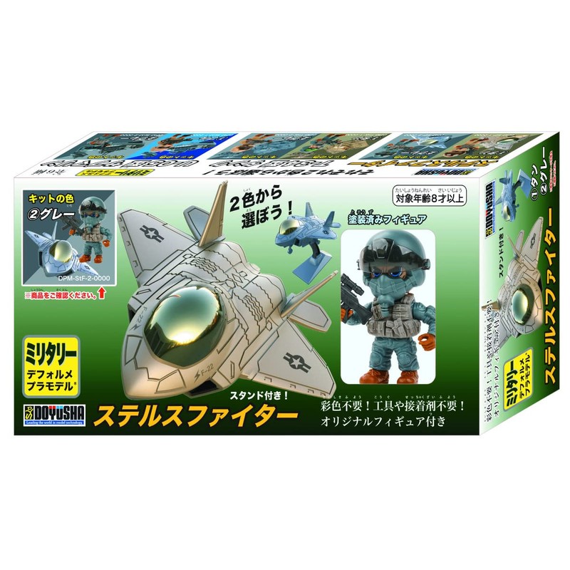 Doyusha DPM-StF-2 Deformed Plastic Model Series, Military Stealth Fighter, With Fighter Figure (Gray), Color Coded Plastic Model