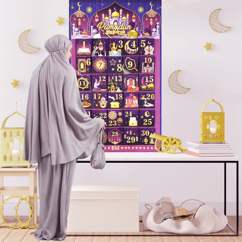 - Eid countdown calendar: Advent calendar made of purple gold fabric for children and adults, Islamic advent calendar to fill in, Muslim advent calendar to make yourself, Ramadan calendar for 30 days, Ramadan calendar decoration.