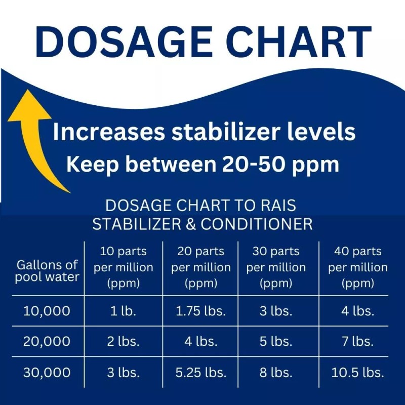 - Quick Dissolving Formula: Our pool stabilizer for salt pool quickly dissolves, ensuring easy application and maximum efficiency. This chlorine stabilizer for pool will prevent chlorine loss and keep your pool water clear and inviting.