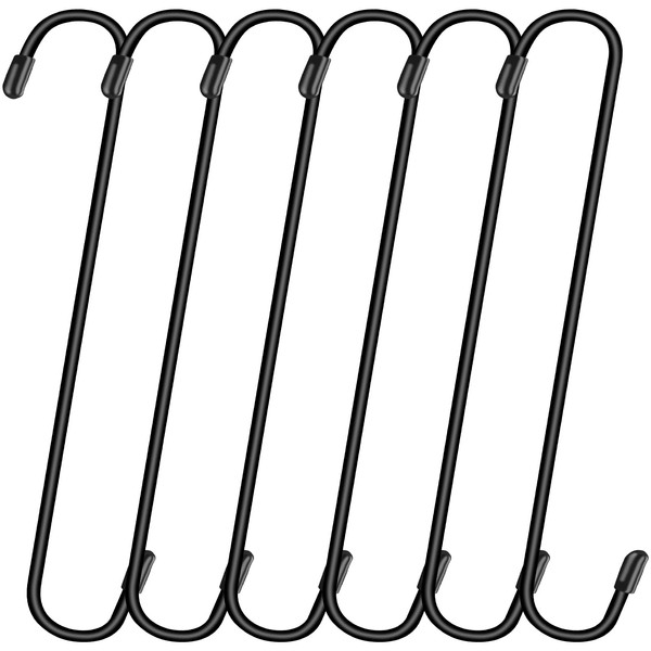 Dpyrrhic 6 Pack 10 Inch Large S Hooks for Hanging Plants,Black Extra Matel Heavy Duty Hook for Hang Brsket,Bird House,Clothes,Kitchenware