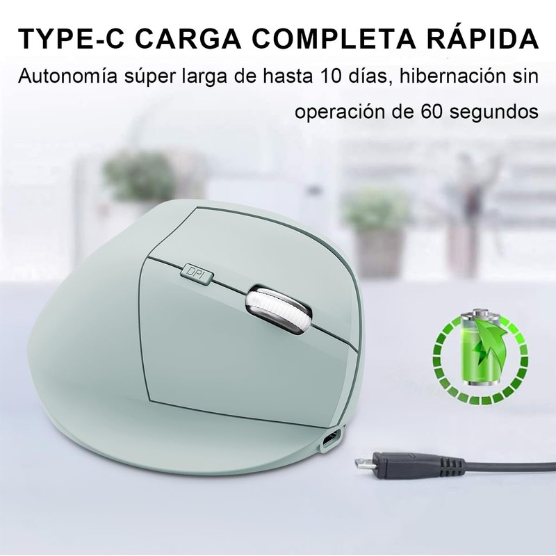 DQST Ratón Vertical Ergonómico Inalambrico Recargable -3 Niveles dpi (800-1600)-Compatible con Windows/Mac/Linux/Android-DiseñoCómodo Antifatiga para Mano y Muñeca