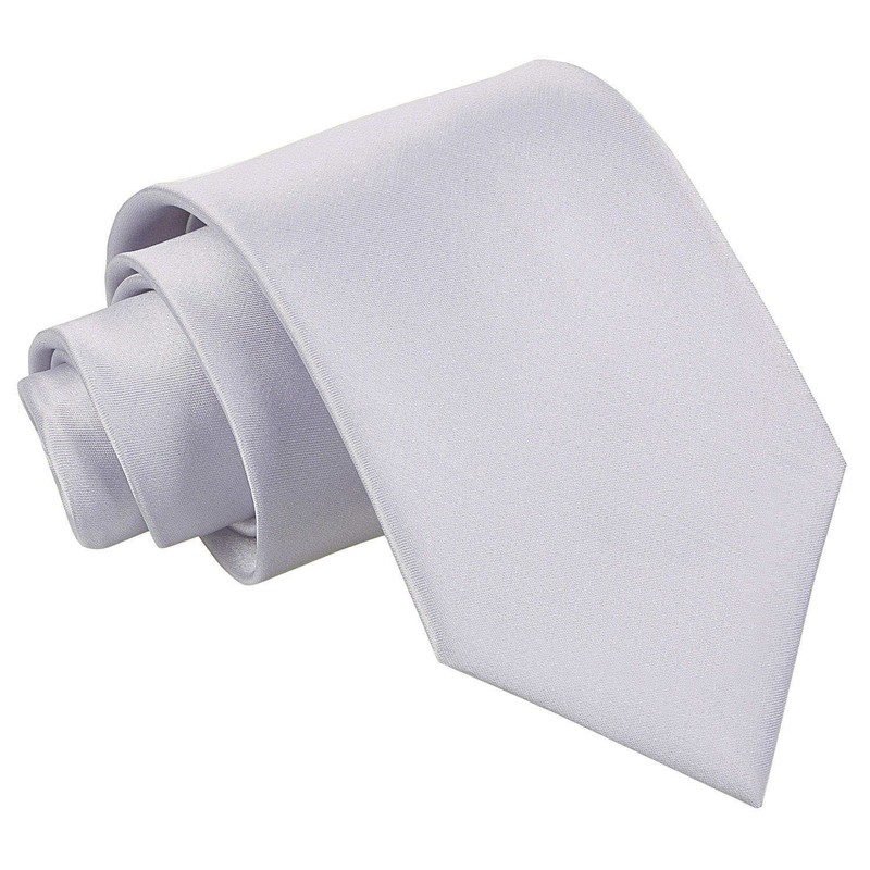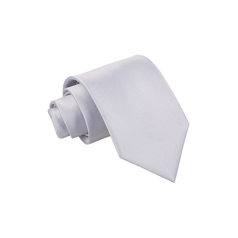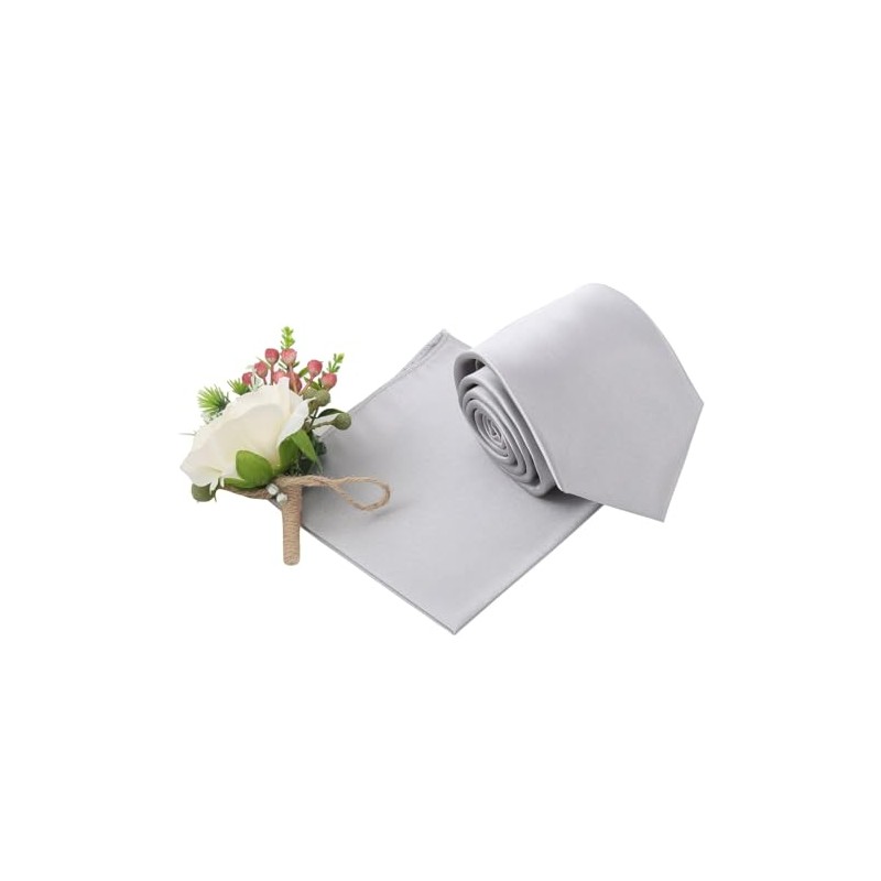 DQT Plain Solid Satin Wedding Necktie and Pocket Square Set for Men - Silver