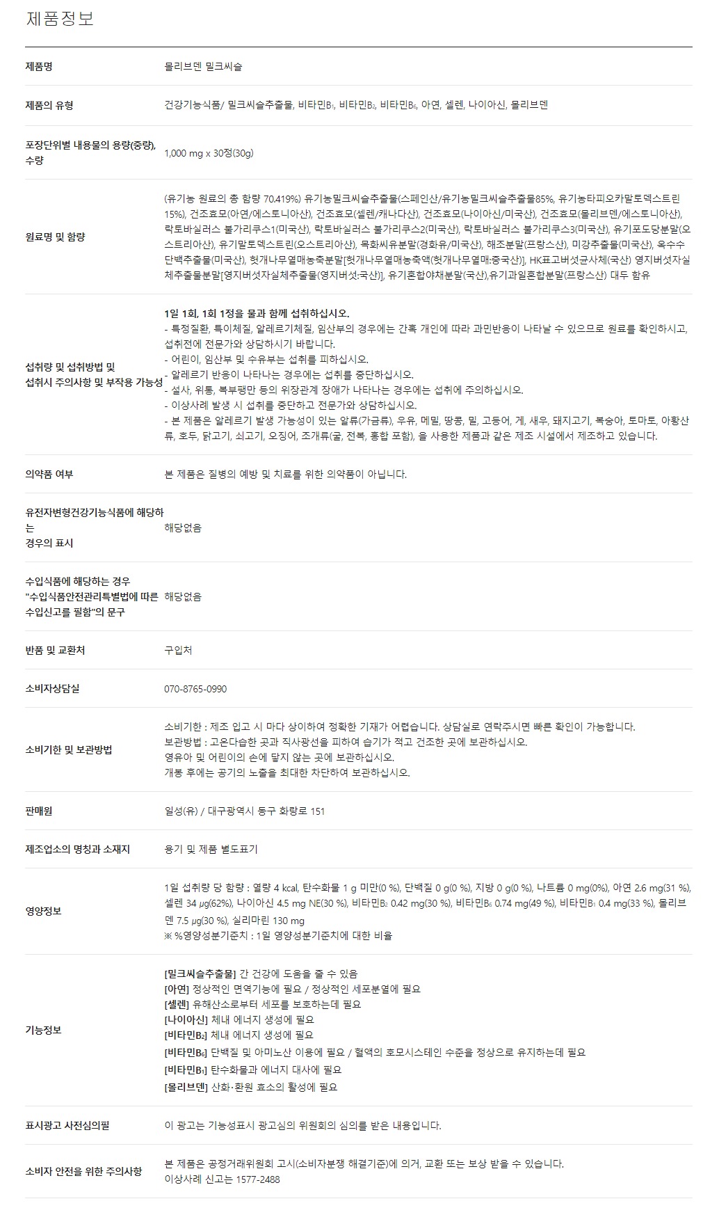 • 「건강기능식품에 관한 법률」에 따른 유전자변형건강기능식품 표시: 상품 상세설명 참조