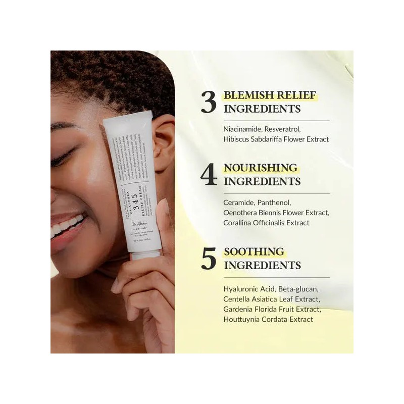 345 Relief Cream 50 ml.: Water, Propanediol, Glycerin, Cyclohexasiloxane, 1,2-hexanediol, Niacinamide, Caprylic/capric, Triglyceride, Polyglycerin-3, Panthenol, Polyglyceryl-10 Stearate, Hydrogenated Polydecene, Hydrogenated Poly(C6-14 Olefin), Dicaprylyl Carbonate, Ammonium Acryloyldimethyltaurate/vp Copolymer, C14-22 Alcohols, Polymethylsilsesquioxane, C12-20 Alkyl Glucoside, Butylene Glycol, Acrylates/c10-30 Alkyl Acrylate Crosspolymer, Ethylhexylglycerin, Polyquaternium-51, Tromethamine, Sodium Hyaluronate, Coptis Japonica Root Extract, Houttuynia Cordata Extract, Oenothera Biennis (Evening Primrose) Flower Extract, Beta-glucan, Resveratrol, Gardenia Florida Fruit Extract, Lavandula Angustifolia (Lavender) Flower Extract, Opuntia Ficus-indica Stem Extract, Hydrolyzed Hyaluronic Acid, Centella Asiatica Leaf Extract, Phenoxyethanol, Hibiscus Sabdariffa Flower Extract, Tocopherol, Corallina Officinalis Extract, Ceramide Np.