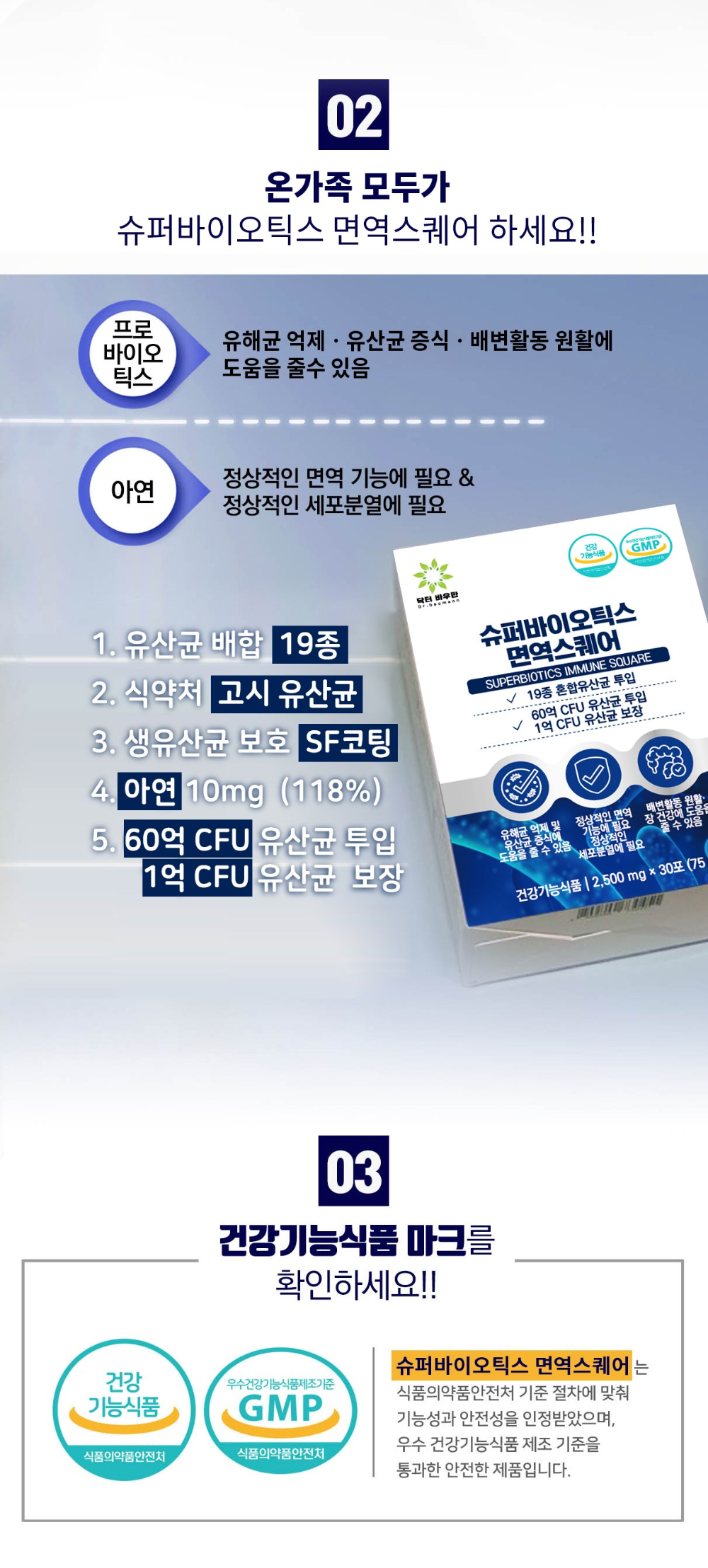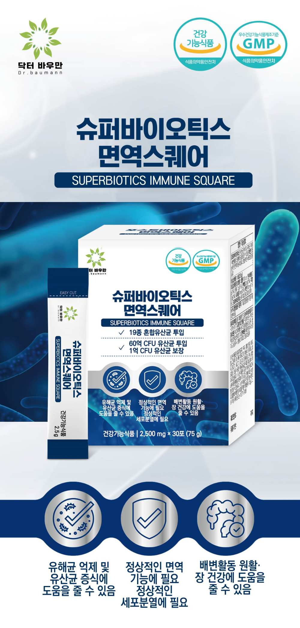 Dr. Bauman Superbiotics Immune Square 2.5g 30 packets 1+1 2 month supply / 닥터바우만 슈퍼바이오틱스 면역스퀘어 2.5g 30포 1+1 2개월분