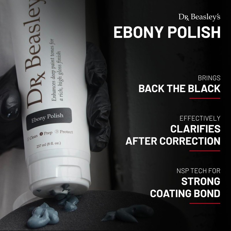 Dr. Beasley's Ebony Polish for Autos - Restores Deep Tones, NSP Technology, Clarifies & Enhances, High Reflective Shine, Perfect for Dark Paints, 8 Oz