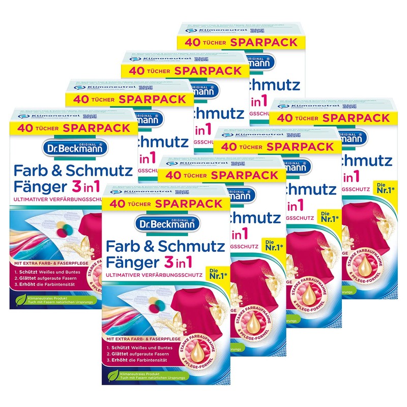 Dr. Beckmann Paint and Dirt Trapper 3-in-1 | Colour Catcher Cloths for Ultimate Discolouration Protection | with Extra Colour & Fibre Care | 8 x 40 Cloths