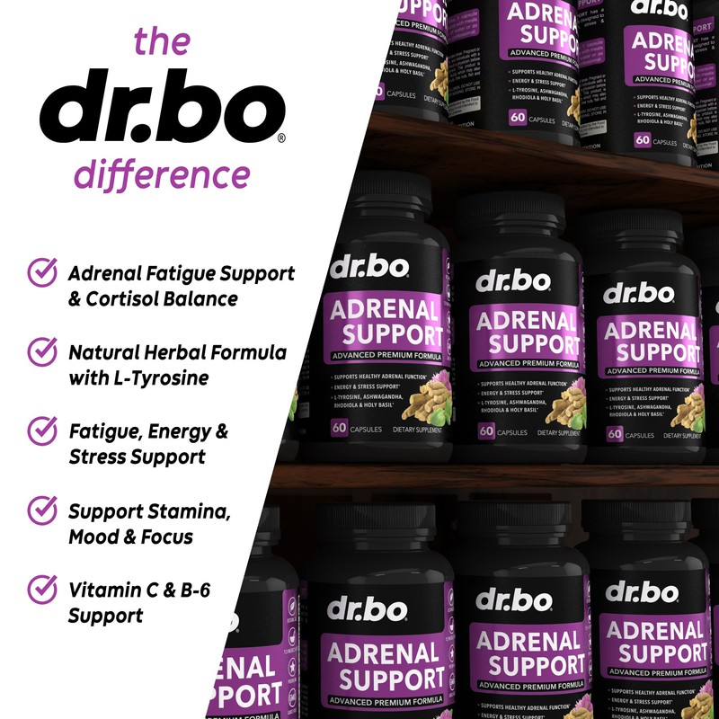 - Natural: Dr. Bo adrenal support supplements deliver the best balance for a complete adrenal gland & cortisol health supplement complex pill with pure l tyrosine, holy basil, ashwagandha and rhodiola