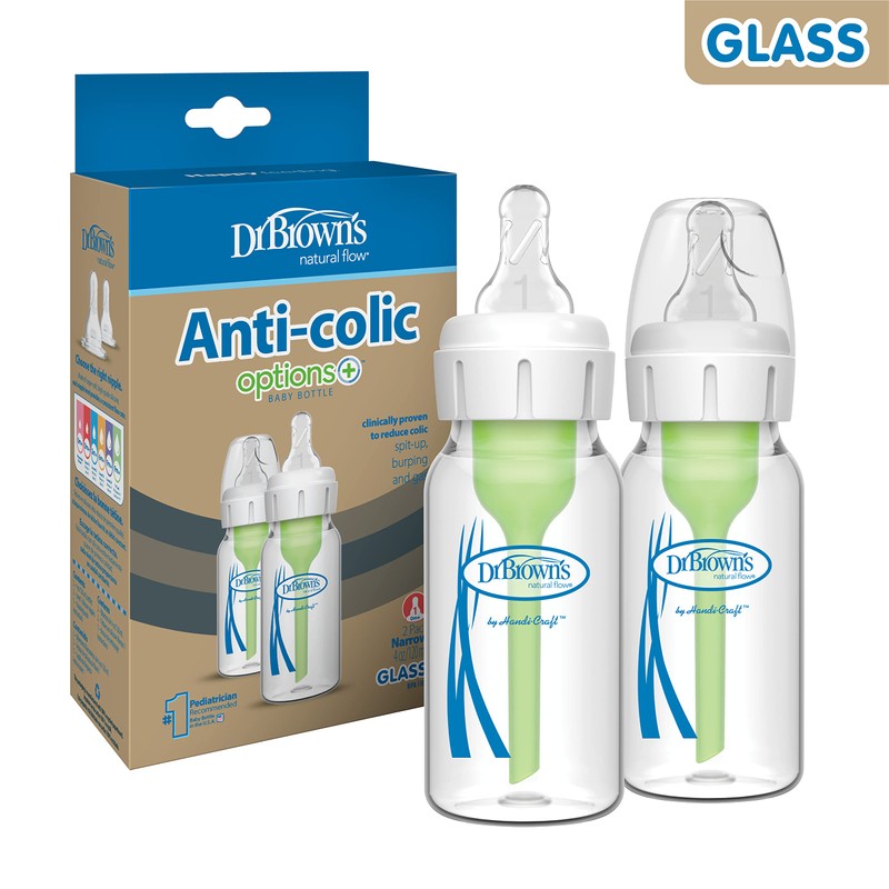 - Dr. Brown's Natural Flow Anti-Colic Options+ Narrow Glass Baby Bottle 4 oz/120 mL, with Level 1 Slow Flow Nipple, 2 Pack, 0m+