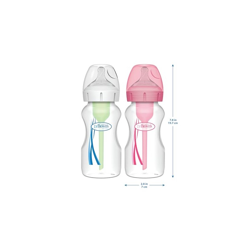 - Dr. Brown's Natural Flow Anti-Colic Options+ Wide-Neck Baby Bottles 9 oz/270 mL, with Level 1 Slow Flow Nipple, 4 Count, 0m+