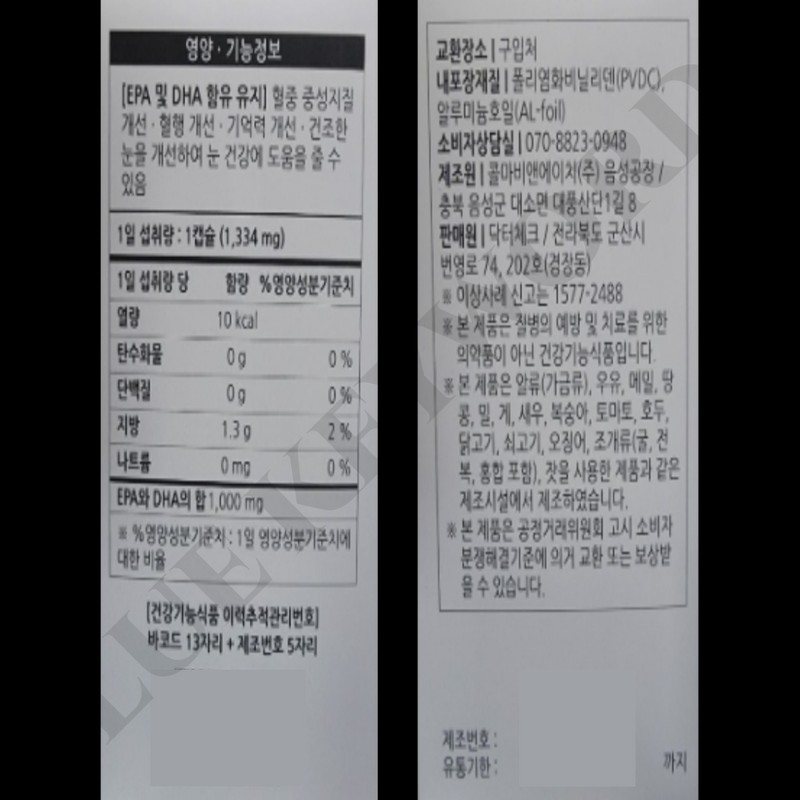 Dr. Check One Purday Max Altige Omega 3 1334mg x 90 capsules x 2 boxes 6 months supply / 닥터체크 원퍼데이 맥스 알티지 오메가3 1334mg x 90캡슐 x 2박스 6개월분