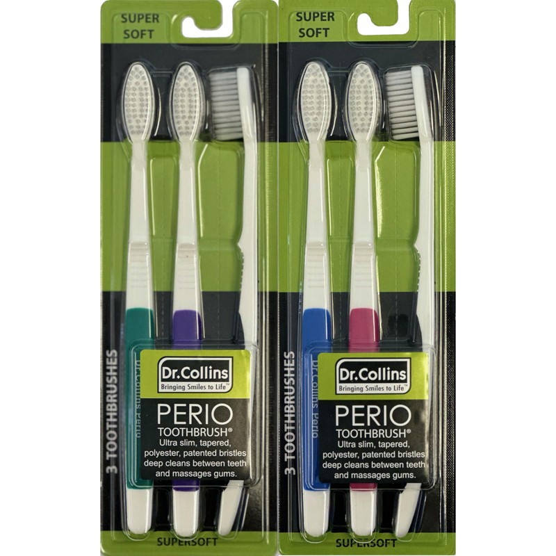 Dr. Collins Perio Toothbrush 3 Pack, (Colors Vary) (Qty. 6, Pack of 2)