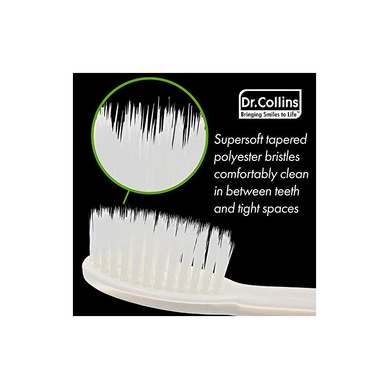 - Dr. Collins Perio Toothbrush penetrates the areas between teeth and gums removing plaque and food particles, while gently massaging gums without pain and bleeding