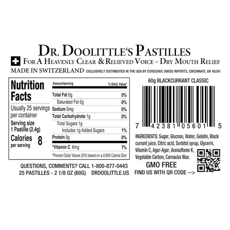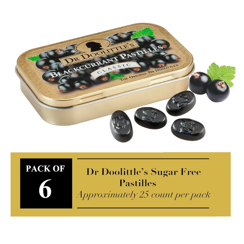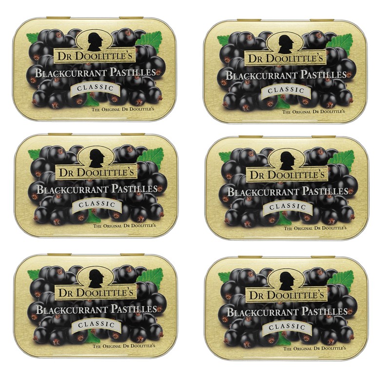 Dr. Doolittle’s Classic Soft Fruit Pastilles for Voice and Throat, Blackcurrant Flavor, 2.12 Ounce Tin, Approximately 25 Count Package, 6 Pack