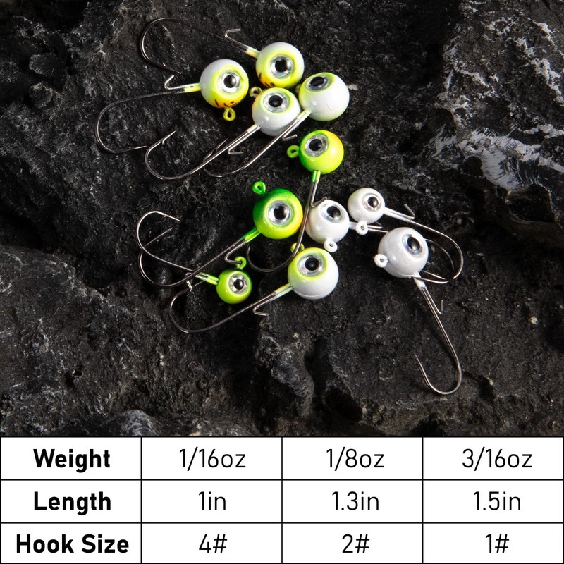 - Ganchos afilados de acero de alto carbono, esta cabeza de plantilla está diseñada para penetrar los peces de forma rápida y segura, mejorando tus posibilidades de aterrizar una captura cada vez.